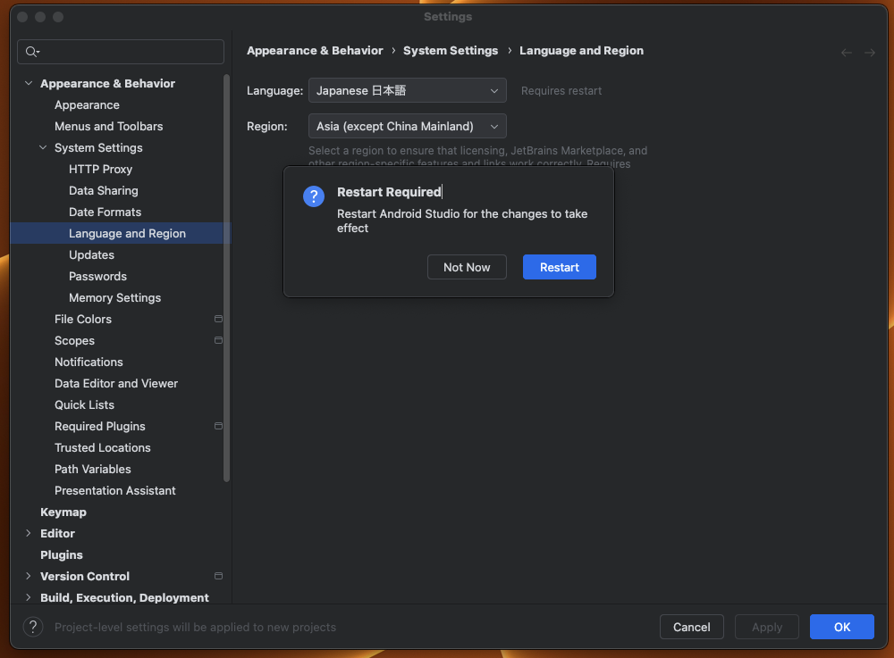 これで、あなたのAndroid Studioは完全に日本語化され、より快適な開発環境が手に入りました!